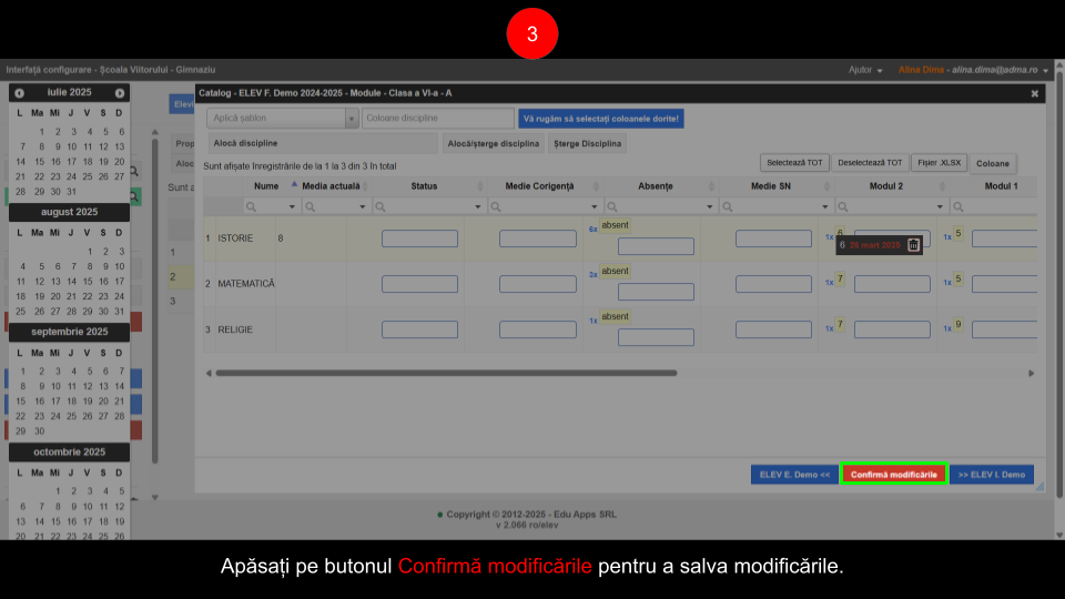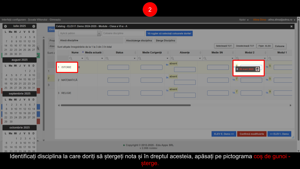 | ☀ SCOP | Ștergerea unei note de către administratorul tehnic / secretariat. |