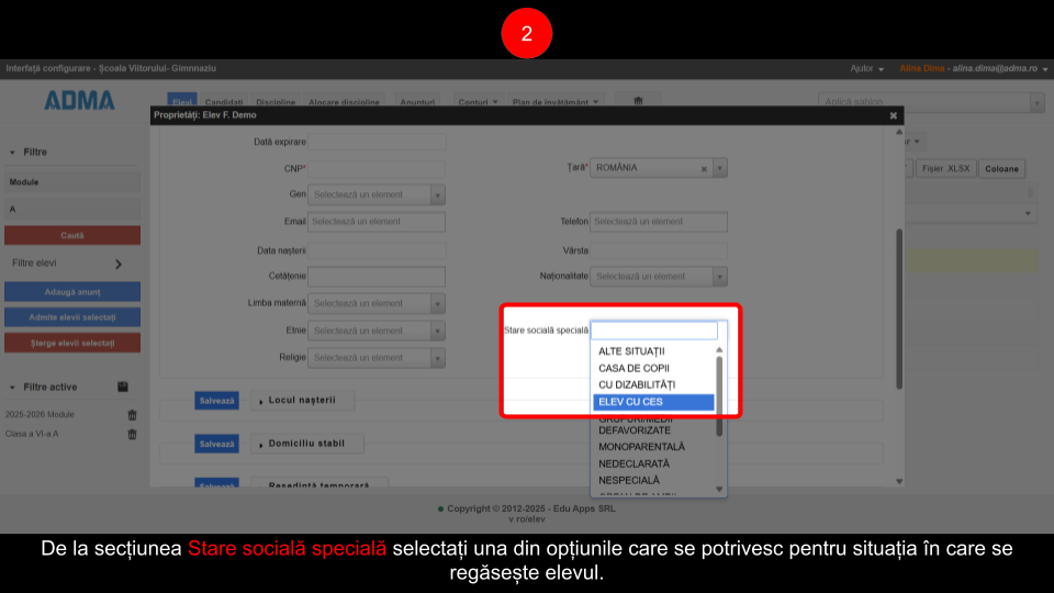 | ☀ SCOP | Setarea unei stări sociale speciale pentru anumiți elevi, astfel încât aceștia să poată fi identificați mai ușor în catalog.