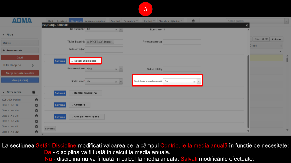 | ☀ SCOP | Este un criteriu care permite ca o disciplină să fie luată în calcul sau nu la media anuală. |